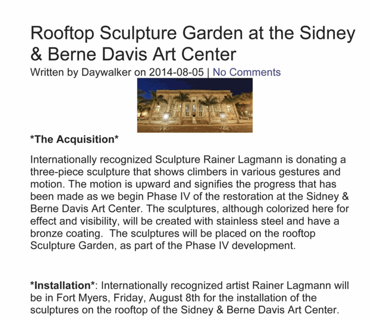 Daywalker, Rooftop Sculpture Garden